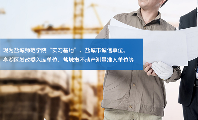 我公司全称为江苏亚盛规划测绘有限公司,成立于2015年5月15日,单位性质为有限责任公司,办公地址位于盐城市盐都区盘古路1号二楼。测绘资质等级为乙级(资质证书号:乙测资字3213790)。现有职工人数30余名,其中注册测绘师2名、中级工程师8名,技术员17名,在职测绘人员无论在外业测绘、内业成图等方面均有工作能力。
